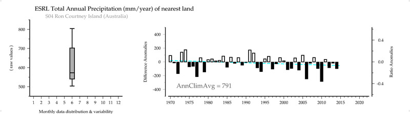 ESRL Total Annual Precipitation (mm/year) of nearest land
