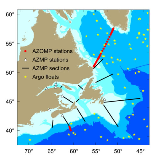 Map of the Atlantic Zone Off-shelf Monitoring Program (AZOMP).
