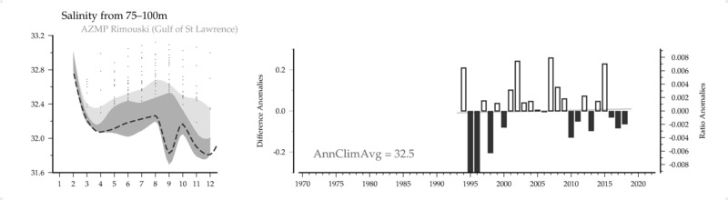 Salinity () from 75-100m