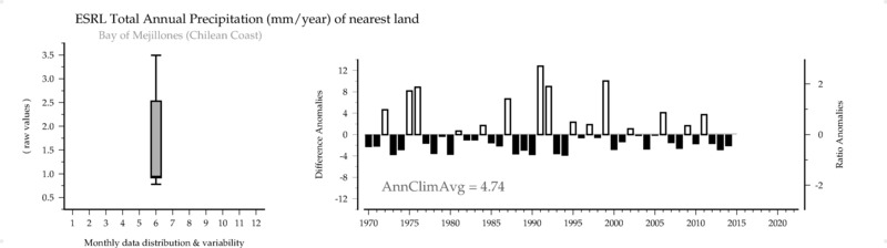 ESRL Total Annual Precipitation (mm/year) of nearest land