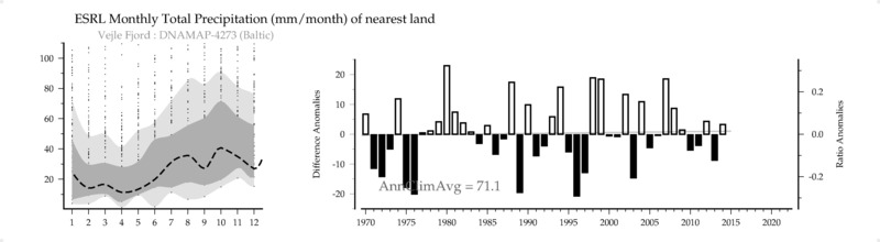ESRL Monthly Total Precipitation (mm/month) of nearest land
