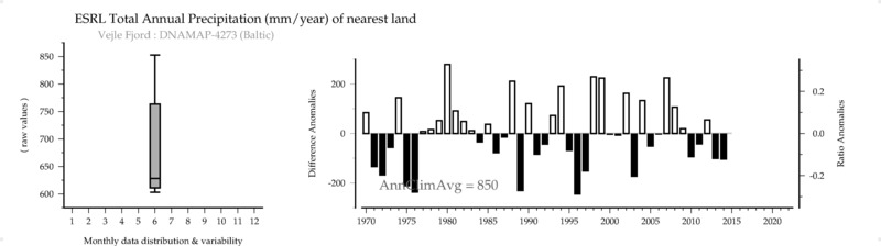 ESRL Total Annual Precipitation (mm/year) of nearest land