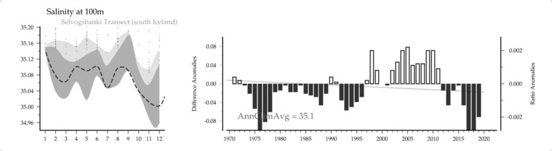 Salinity () at 100m
