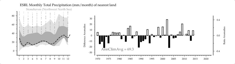 ESRL Monthly Total Precipitation (mm/month) of nearest land
