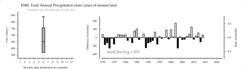ESRL Total Annual Precipitation (mm/year) of nearest land