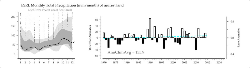 ESRL Monthly Total Precipitation (mm/month) of nearest land