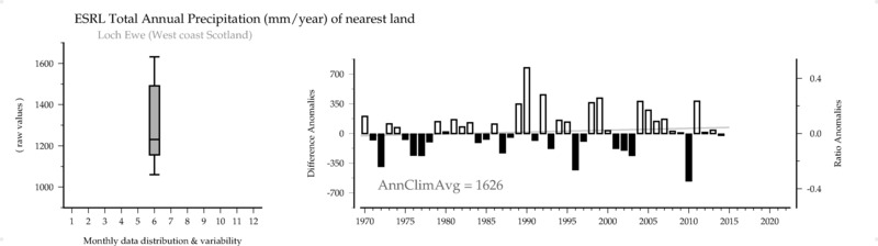 ESRL Total Annual Precipitation (mm/year) of nearest land