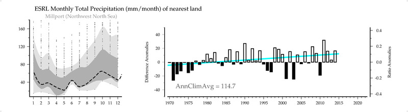 ESRL Monthly Total Precipitation (mm/month) of nearest land