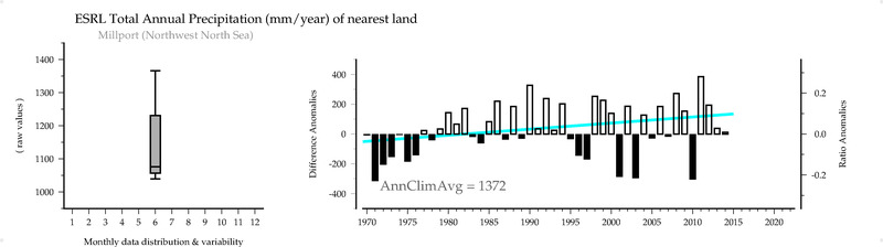 ESRL Total Annual Precipitation (mm/year) of nearest land