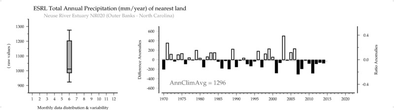 ESRL Total Annual Precipitation (mm/year) of nearest land