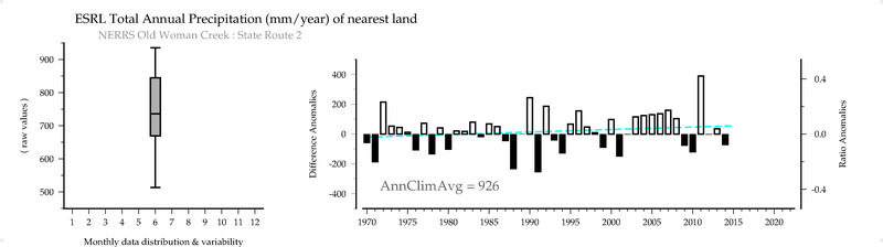 ESRL Total Annual Precipitation (mm/year) of nearest land