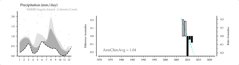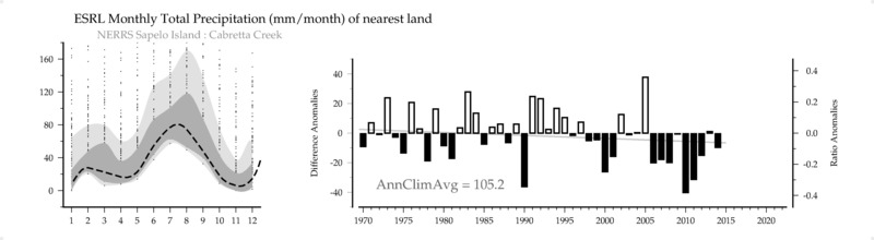ESRL Monthly Total Precipitation (mm/month) of nearest land